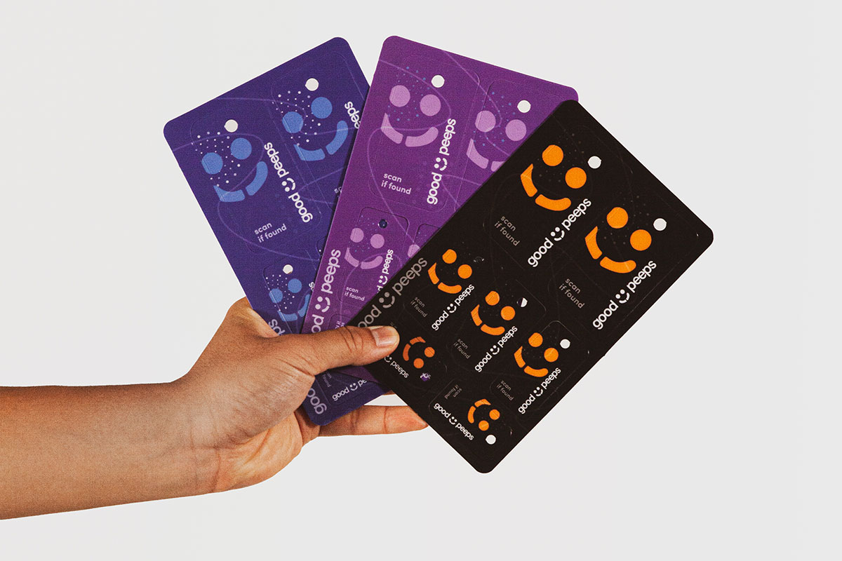 Put your Good Peeps stickers on your losable stuff.