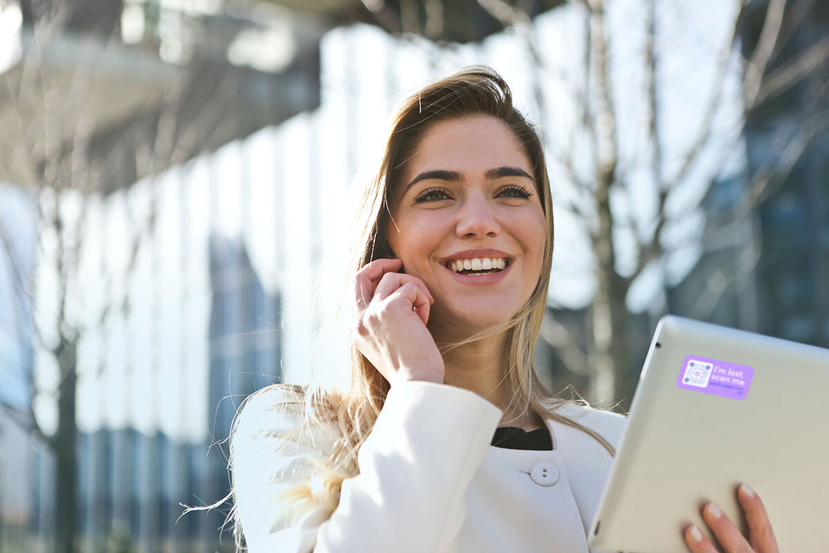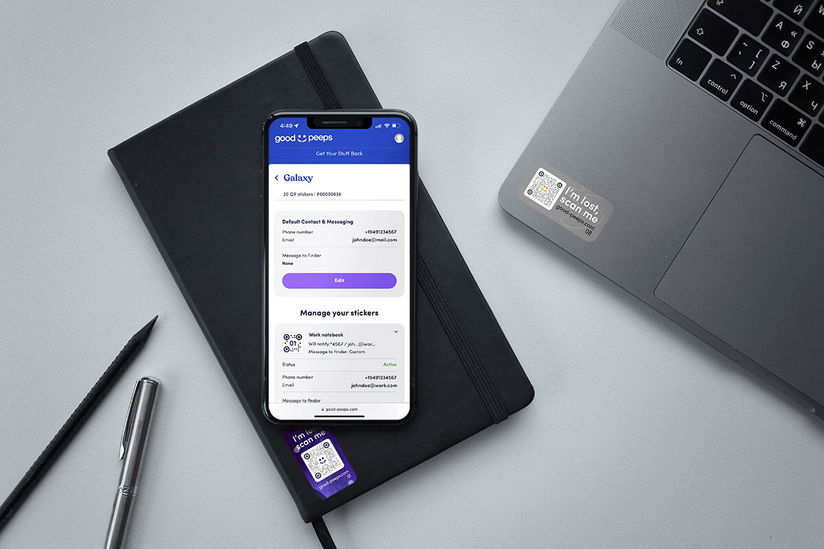 A little sticker that helps your lost stuff find you. Put it on your keys, your laptop, your backpack. Get a text or an email if someone finds your item! No bluetooth, no tracking, no exchange of personal information. Just stick it somewhere visible and you’re good to go!
